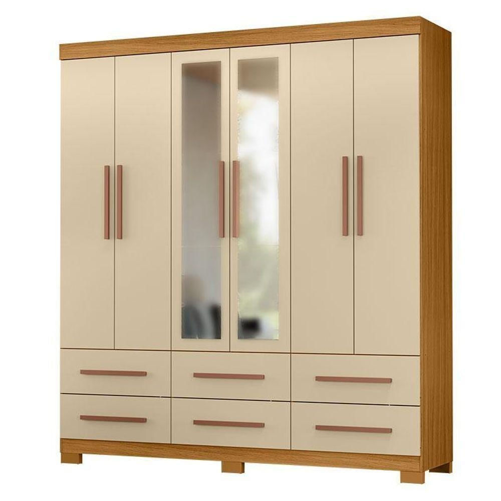 Guarda Roupa Casal New Kansas Carvalho Americano Off White com Espelho - Incorplac