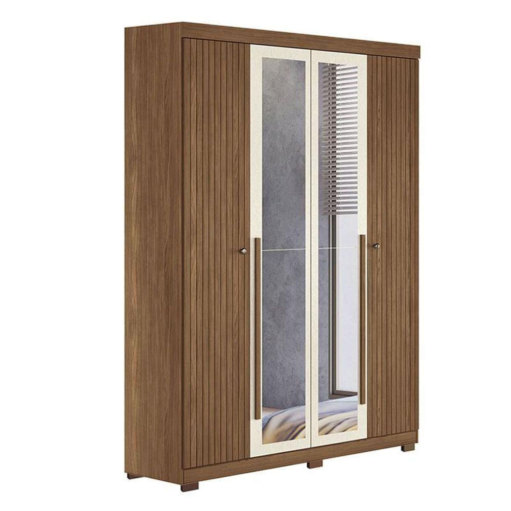 Guarda Roupa Casal Ripado 4 Portas Buriti Com Espelho E Pés Jatobá Areia Acetinado - Santos Andirá