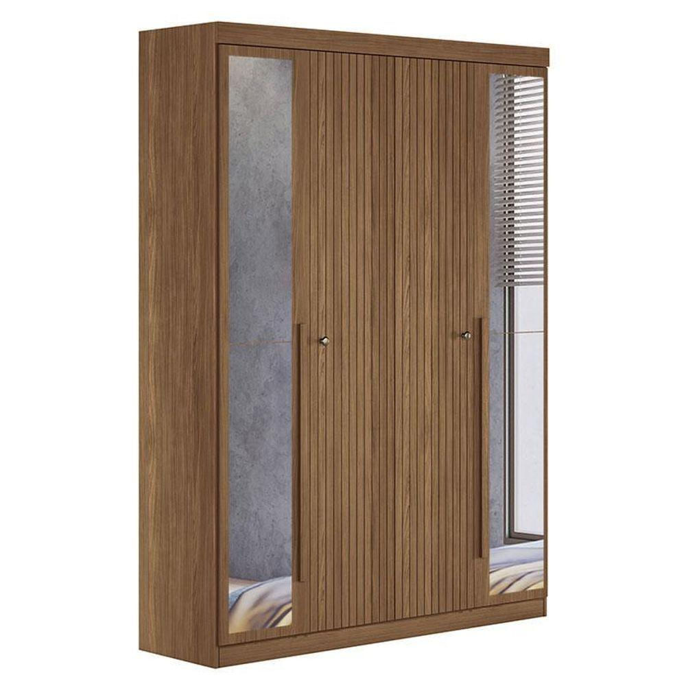 Guarda Roupa Casal Ripado 4 Portas Buriti Com Espelho Jatobá Acetinado - Santos Andirá