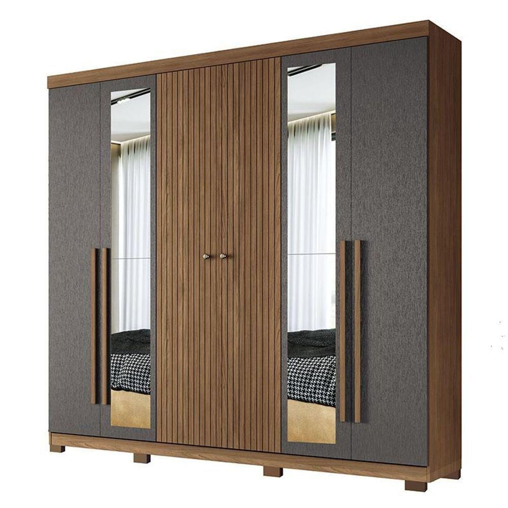 Guarda Roupa Casal Ripado 6 Portas Buriti Com Espelho E Pés Jatobá Grafite Acetinado - Santos Andirá