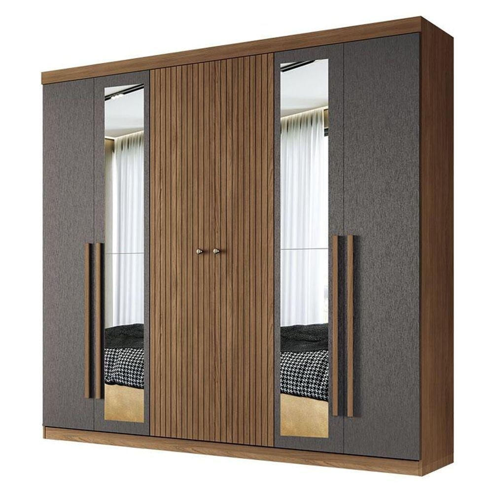 Guarda Roupa Casal Ripado 6 portas Buriti Jatobá Grafite com espelho Acetinado - Santos Andirá Guarda Roupa Casal Ripado 6 portas Buriti Jatobá Grafite com espelho: Mais espaço, mesmo design elegante: o Ripado Buriti 6 portas oferece prateleiras extras, gavetas e cabideiros que ajudam a manter o quarto sempre arrumado. Versátil e atemporal, é perfeito para famílias que precisam de organização sem abrir mão da aparência.Características técnicas: - Desenvolvida em MDP/MDF - Pintura em Reverse Semi-Fosco - 04 Gavetas com Corrediças Telescópicas - 02 Puxadores em ABS e 04 puxadores em MDF - 03 Amplos maleiros - 07 Prateleiras - 06 Portas com dobradiças metálicas - 03 cabideiros/calceiros em alumínio - Possui espelho