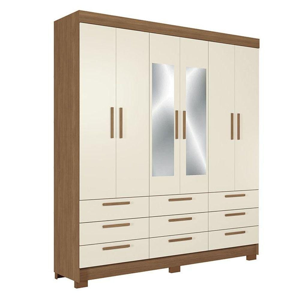 Guarda Roupa Colombo 6 Portas 9 Gavetas Com Espelho Jatobá Areia Acetinado - Santos Andirá