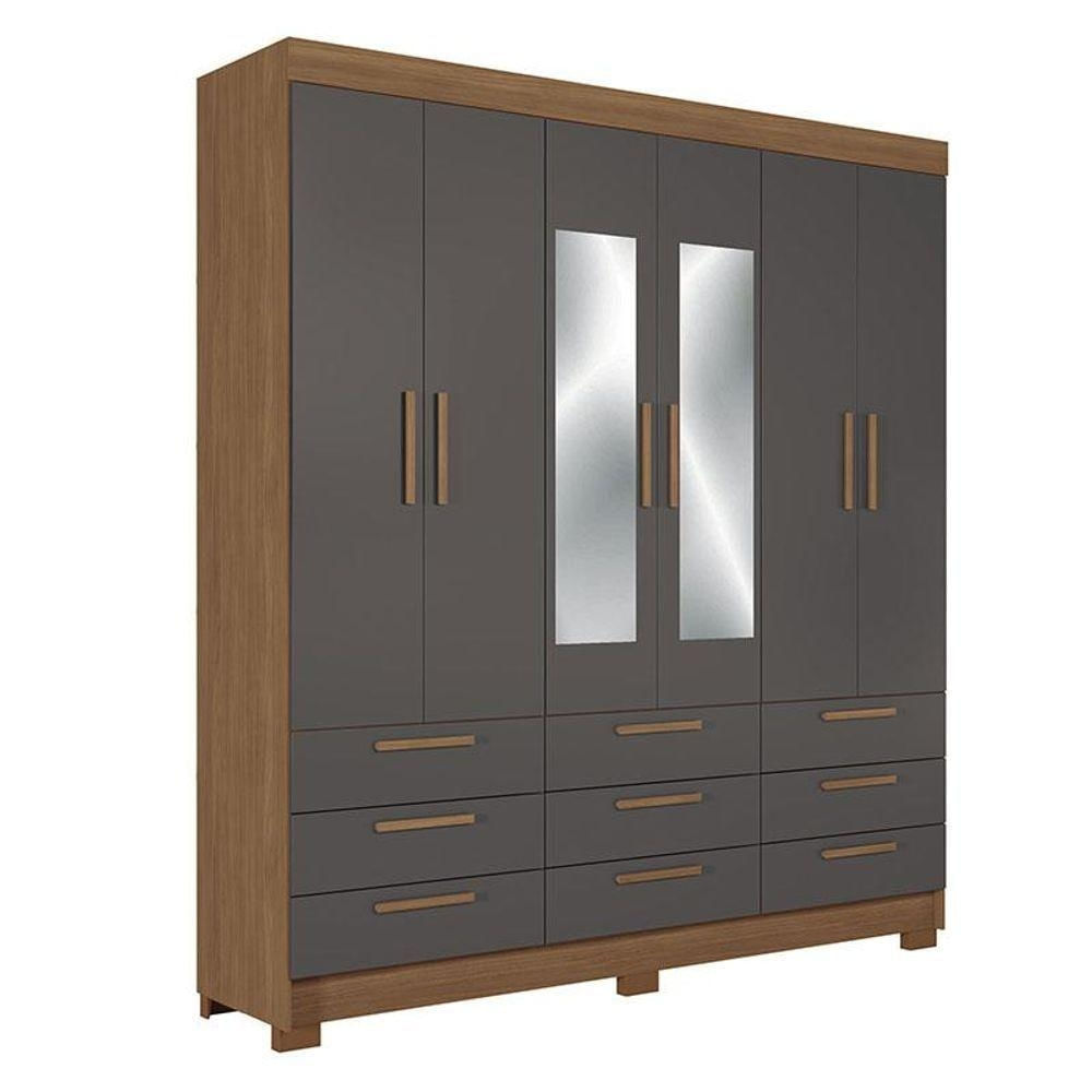 Guarda Roupa Colombo 6 Portas 9 Gavetas Com Espelho Jatobá Grafite Acetinado - Santos Andirá