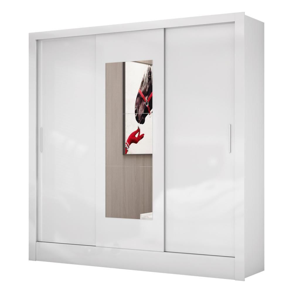 Guarda Roupa Dubai 3 Portas De Correr Com Espelho Central 3 Gavetas Carioca Branco
