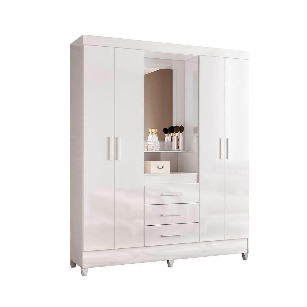 Guarda Roupa Grande Quarto Capri 4 Portas 3 Gavetas Espelho Rosa