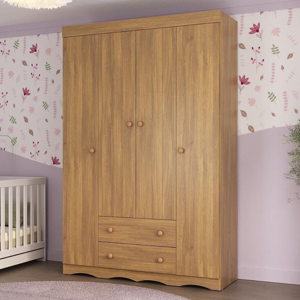 Guarda-roupa Infantil 122cm 4 Portas E 2 Gavetas Realeza Multimóveis Mp4453 Madeirado Madeirado