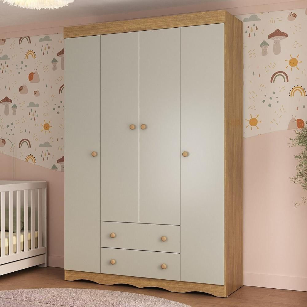 Guarda-roupa Infantil 122cm 4 Portas E 2 Gavetas Realeza Multimóveis Mp4453 Madeirado/off White Madeirado/off White