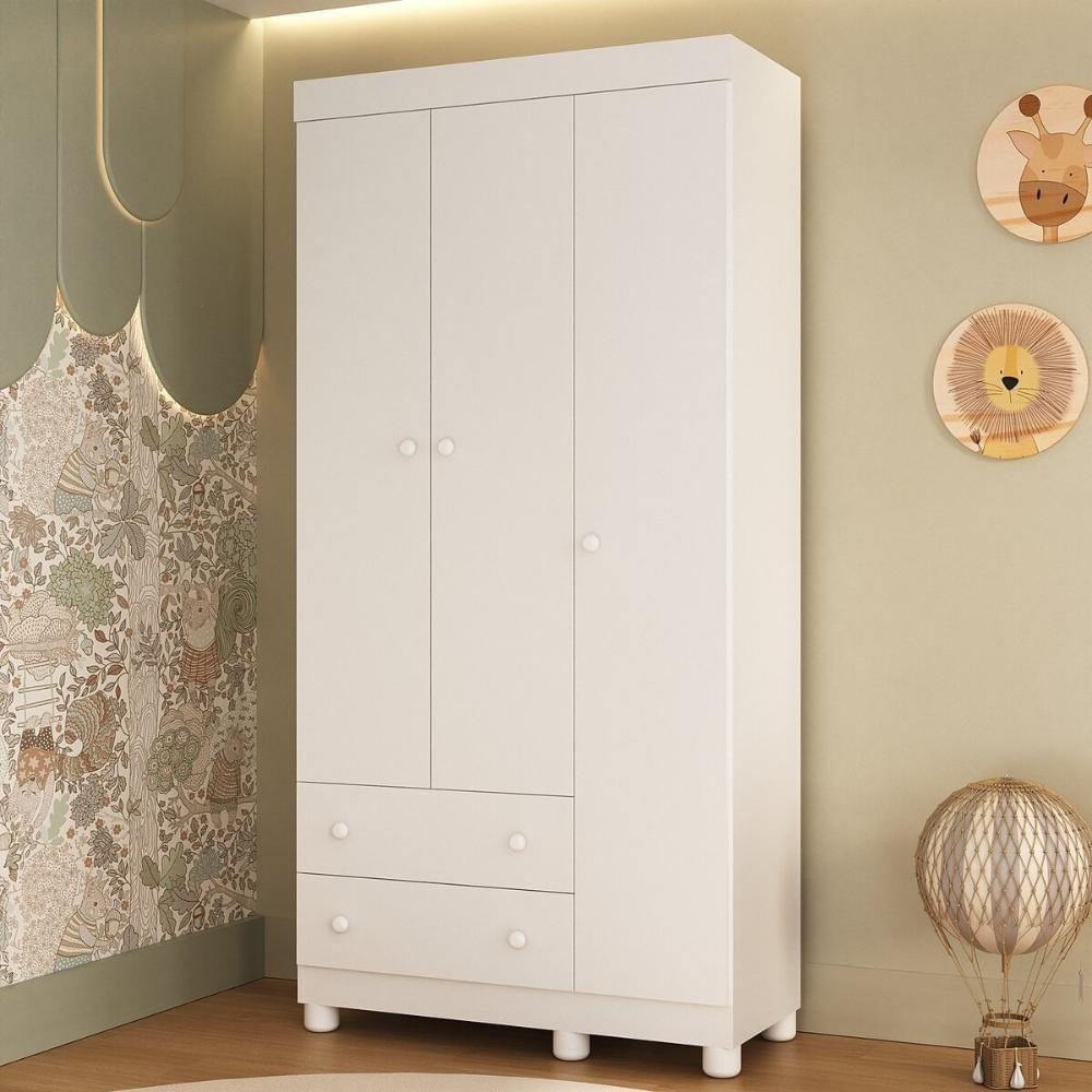 Guarda-roupa Infantil 92cm 3 Portas E 2 Gavetas Allegra Multimóveis Mp4442 Branco Branco