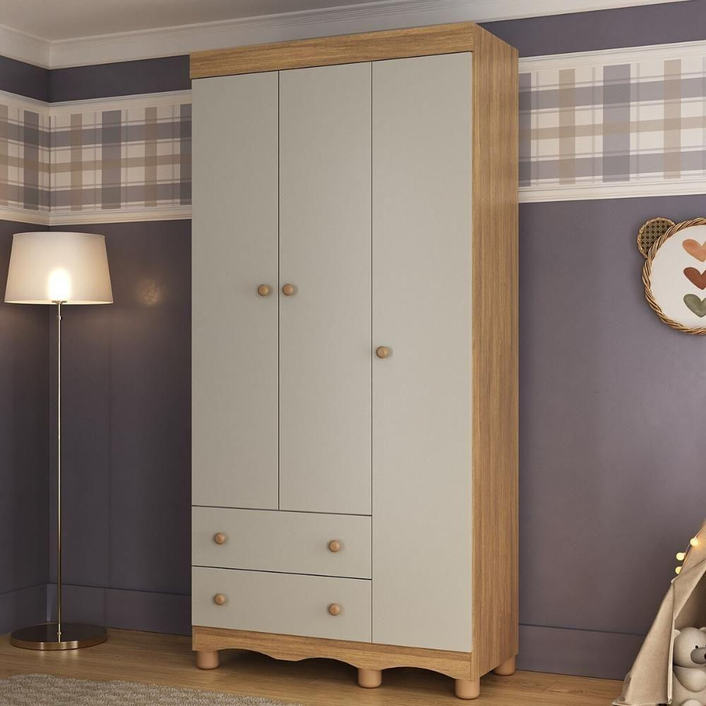 Guarda-roupa Infantil 92cm 3 Portas E 2 Gavetas Dengo Multimóveis Mp4437 Madeirado/off White Madeirado/off White