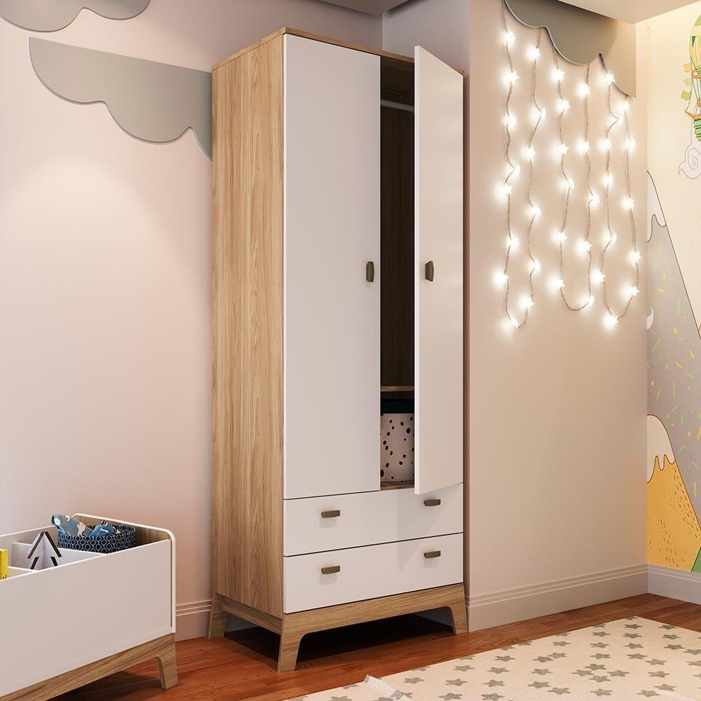 Guarda Roupa Infantil Com 2 Portas E 2 Gavetas Itapuã Com Branco Favo De Marrom Completa Móveis