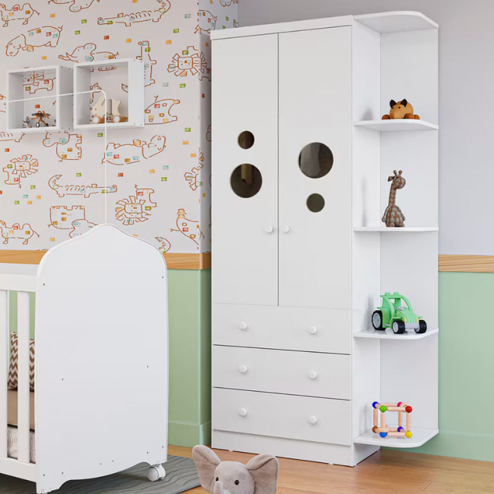 Guarda-Roupa Infantil Duda Plus com 2 Portas Peroba Móveis Branco