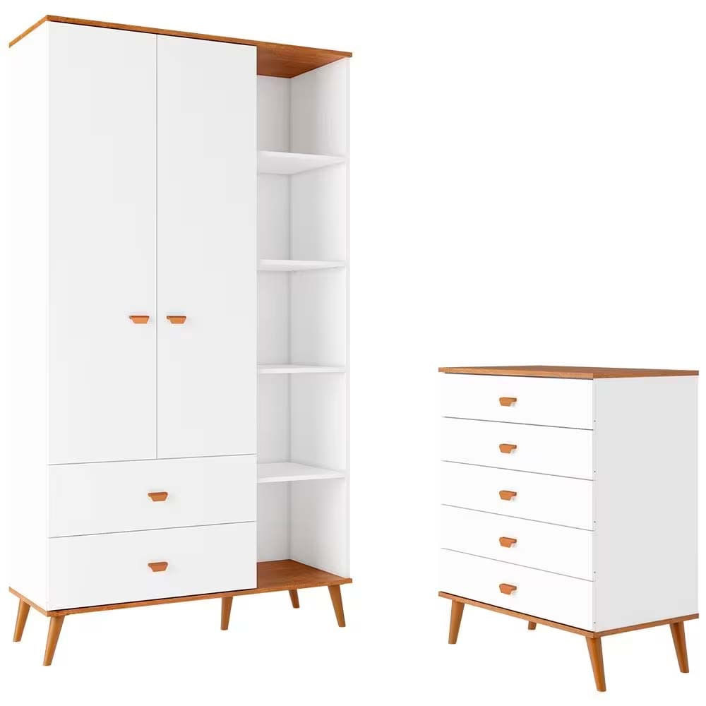 Guarda Roupa Infantil Ternura com 5 Nichos, 2 Portas, 2 Gavetas Bartira Branco Wood