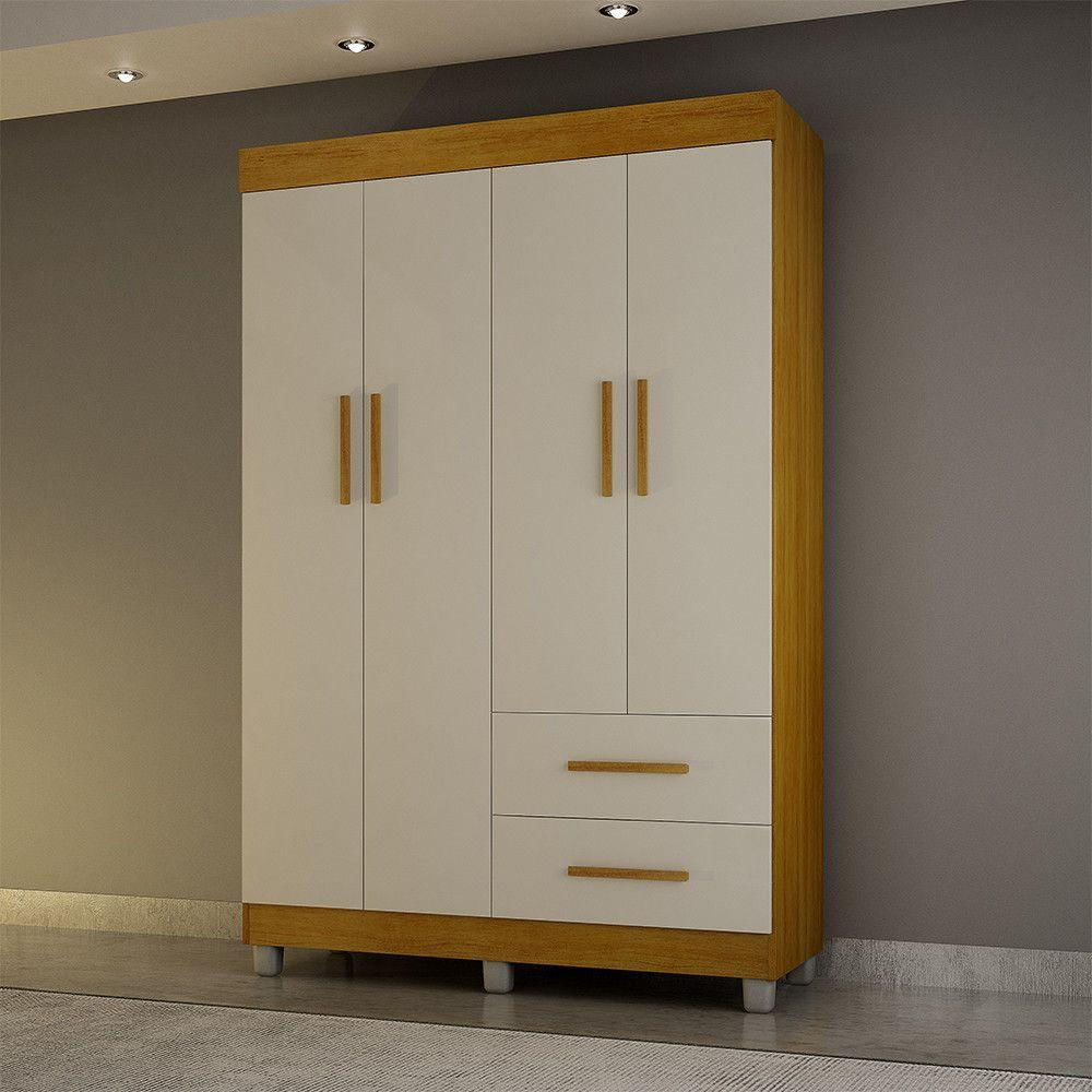Guarda-roupa Pérola Solteiro 4 Portas 2 Gavetas Mobilihouse Cinamomo/off White