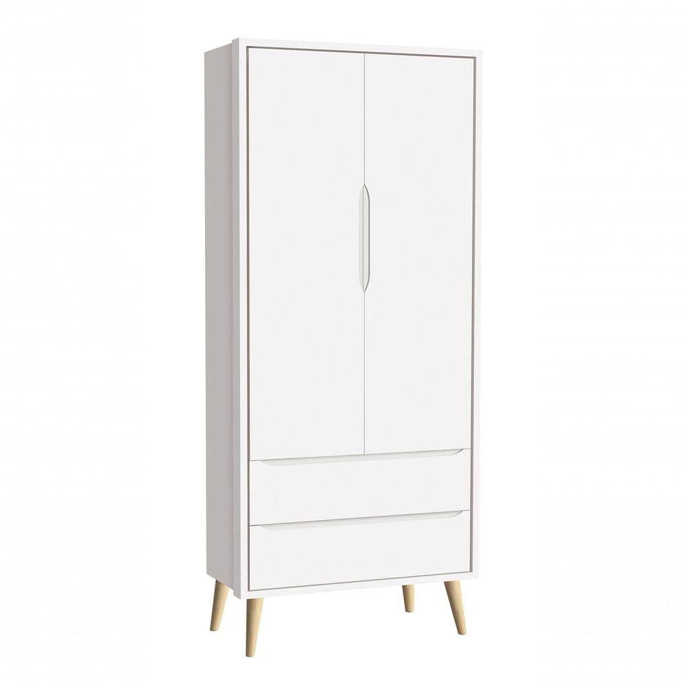 Guarda-roupa Retrô 2 Portas Théo New Branco Fosco Com Natural - Reller