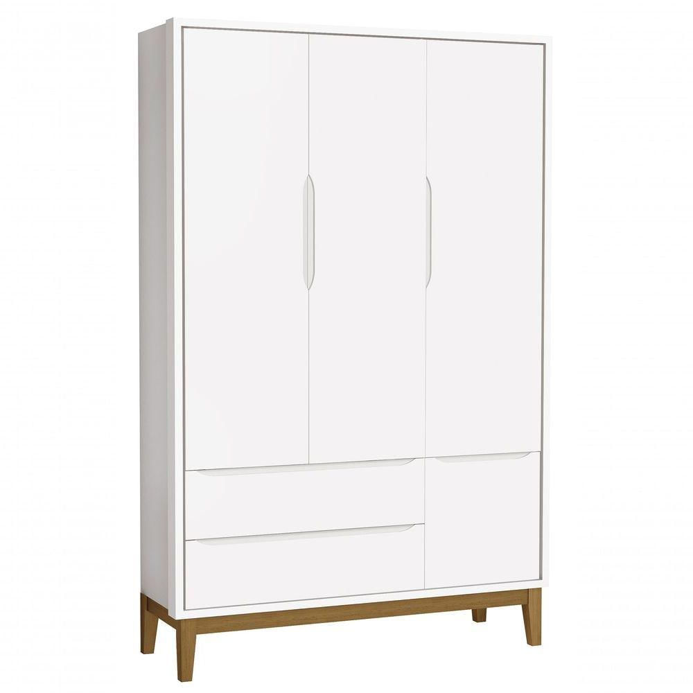 Guarda-roupa Retrô 3 Portas Classic New Branco Fosco Com Madeira - Moveisaqui