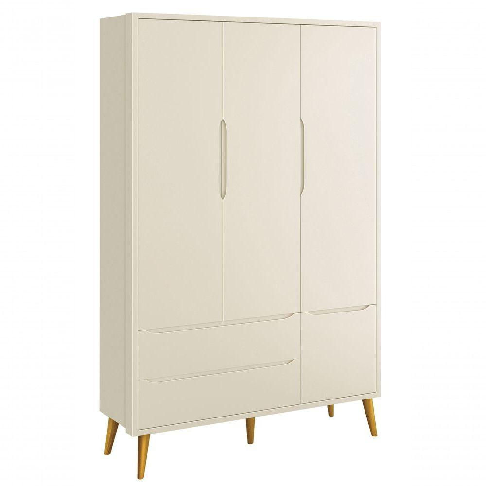 Guarda-roupa Retrô 3 Portas Théo New Areia Fosco Com Madeira - Moveisaqui