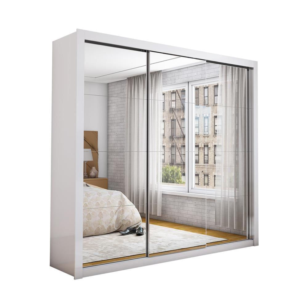 Guarda Roupa Roupeiro Isabela Master 3 Portas De Correr Com Espelho 4 Gavetas Carioca Branco