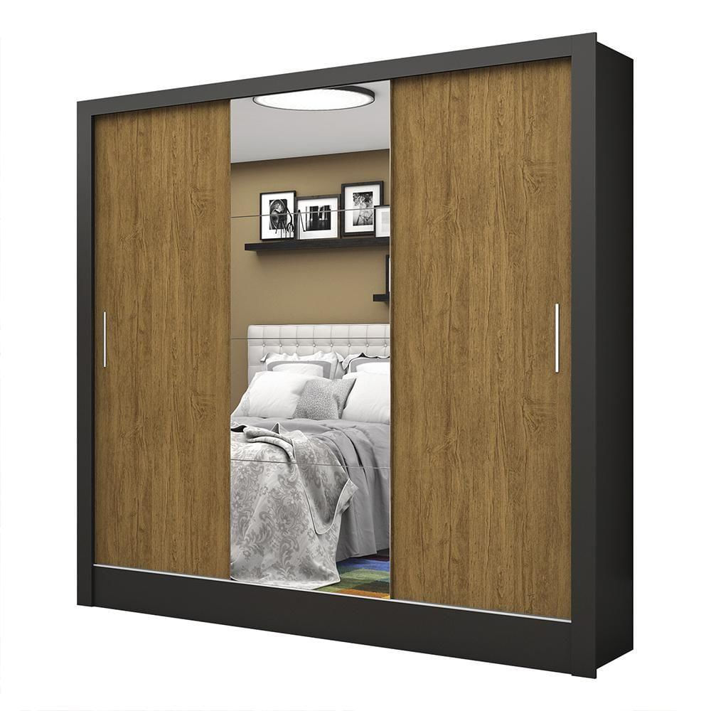 Guarda Roupa Roupeiro Santiago Plus 3 Portas De Correr Com Espelho Central 3 Gavetas Carioca Preto Cinamomo