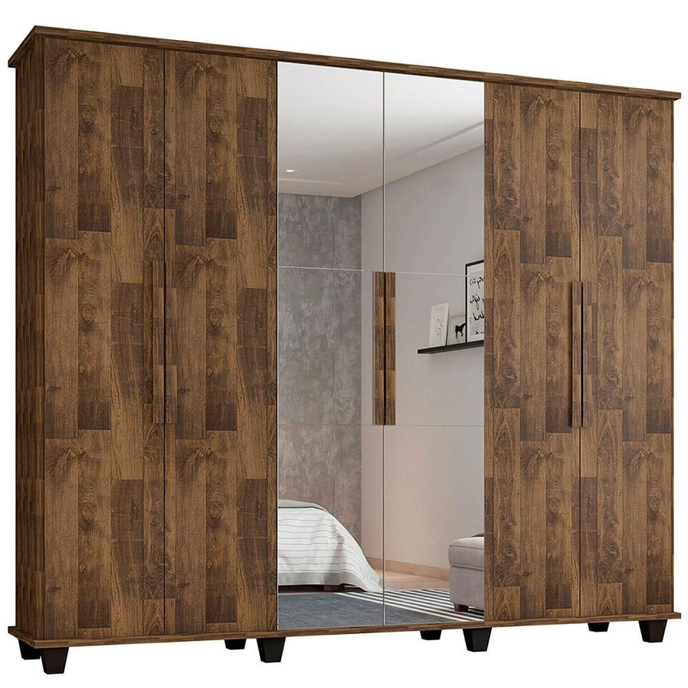 Guarda Roupa RV Móveis Canadá com 6 Portas 4 Gavetas e Espelho Amadeirado