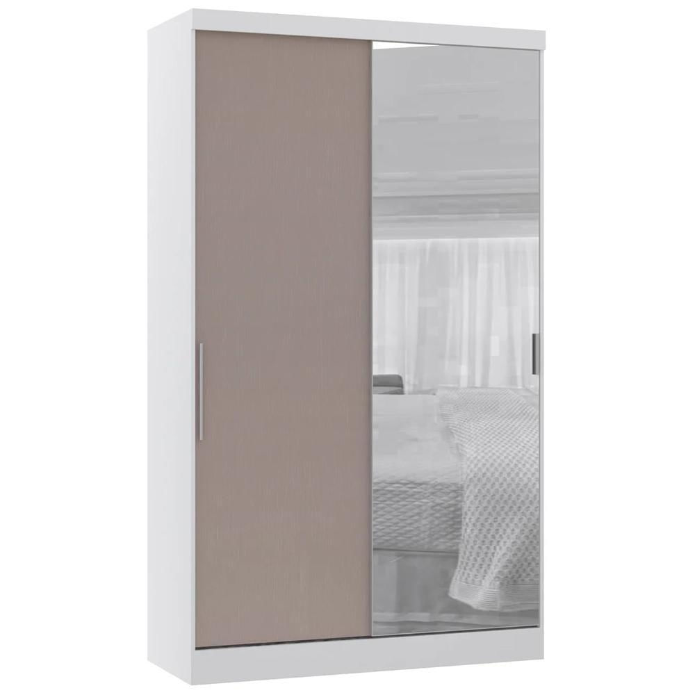 Guarda Roupa Solteiro 135cm 2 Portas e Espelho Delphi Branco/Cinnamon L01 - Mpozenato Este Guarda Roupa de Solteiro é uma ótima escolha para quem busca um móvel funcional para seu Quarto. Sua estrutura em MDP, com rodapé e vista superior, garante durabilidade e um toque extra de sofisticação.