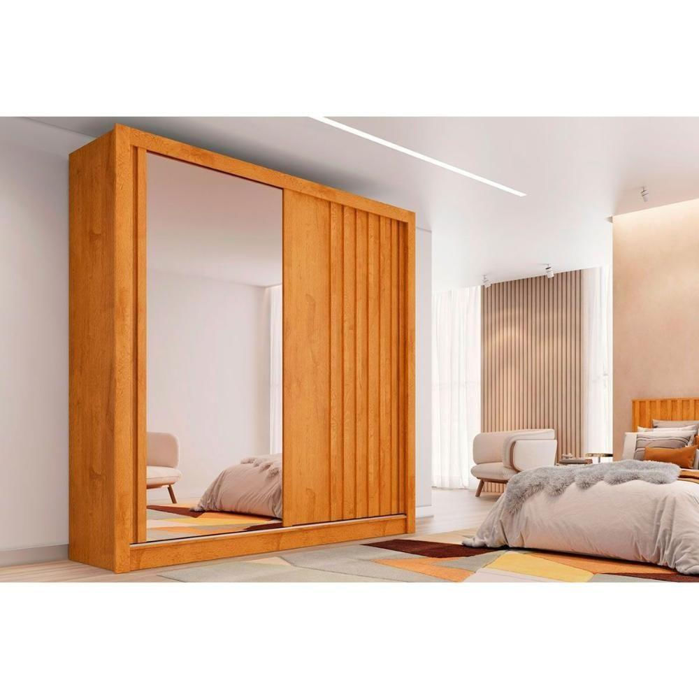 Guarda Roupa Solteiro 2 Portas De Correr (1 Ripada E 1 C- Espelho) E 4 Gavetas Lugano Peroba - Europa