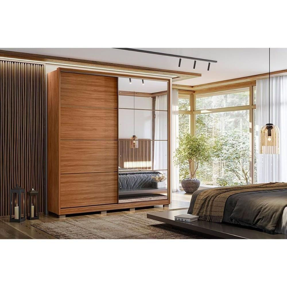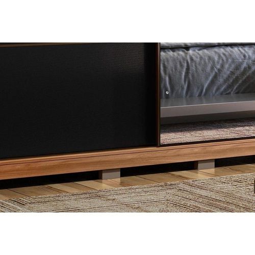 Guarda Roupa Solteiro 2 Portas de Correr 3 Gavetas c/ Espelho e Pés Belga Nogueira/Nogueira ou Preto - Demóbile Marca: Demóbile