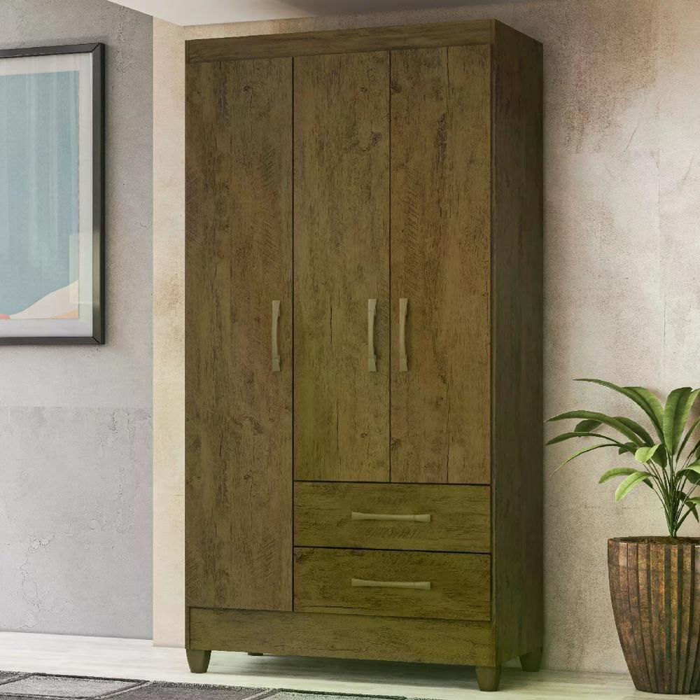 - Produto em MDP - Corrediça metálica - Portas e frente de gaveta de 15 mm - Bastão em madeira reflorestado revestido - Pés em PVC - Puxadores na cor bronze - Impressão UV - Possui Gavetas: 02 - Possui Portas: 03 - Possui Prateleira: 04 - Possui Cabideiros: 01 - Possui Calceiros: 01 - Material do Puxador: PVC - Tipo de Porta: Bater - Acompanha Manual de Montagem: Sim Dimensões:
