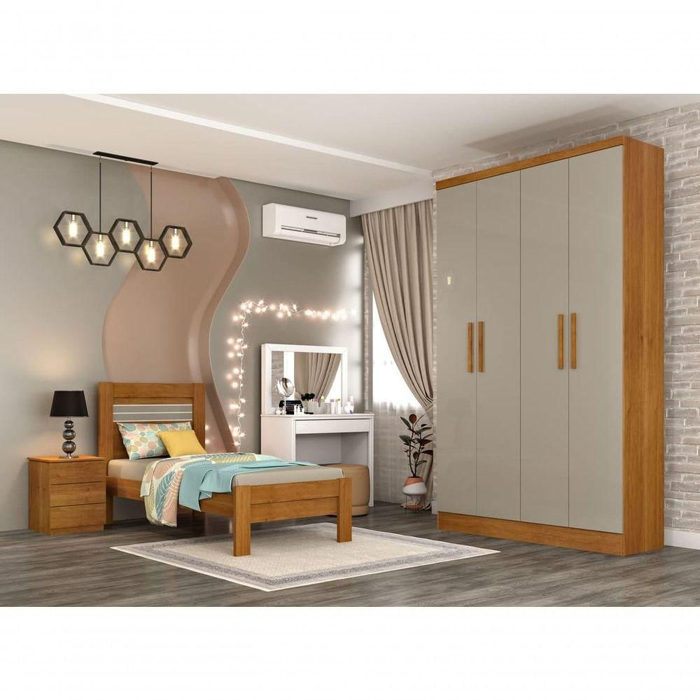 Guarda Roupa Solteiro 4 Portas 2 Gavetas - Amsterdam-cinamomo-off White - Tcil Móveis