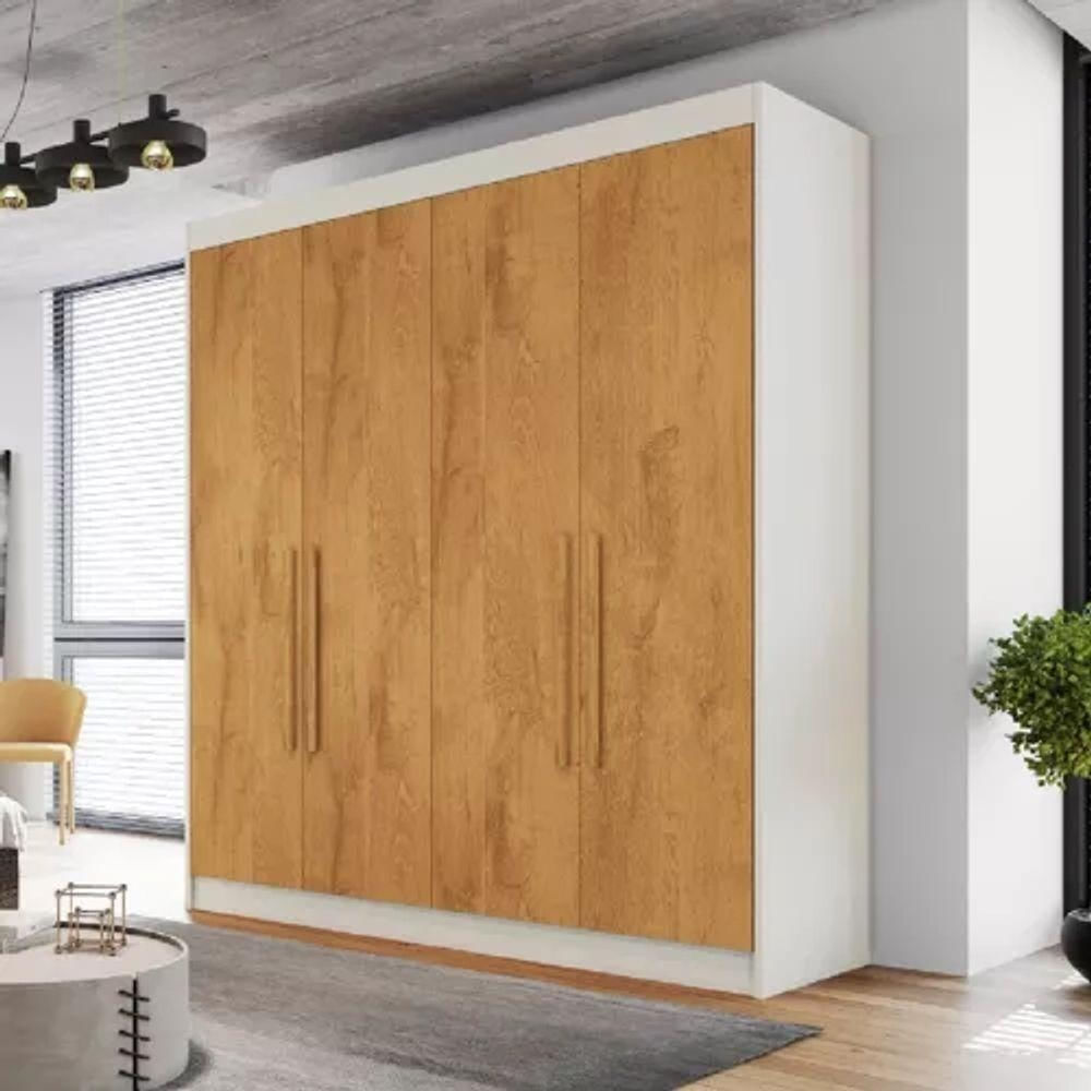 Guarda Roupa Solteiro 4 Portas 3 Gavetas - Nantes-off White/peroba - Móveis Europa