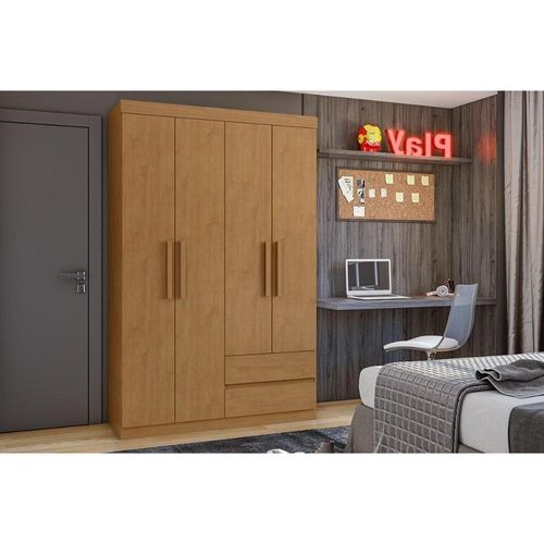 Guarda Roupa Solteiro 4 Portas E 2 Gavetas Zeus Amêndoa