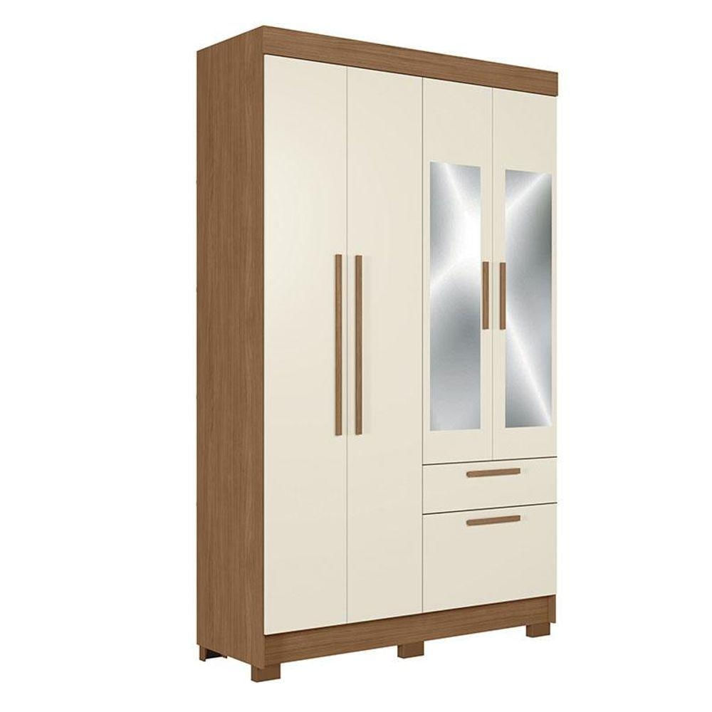 Guarda Roupa Solteiro 4 Portas Londrina Com Espelho Jatobá Areia - Santos Andirá