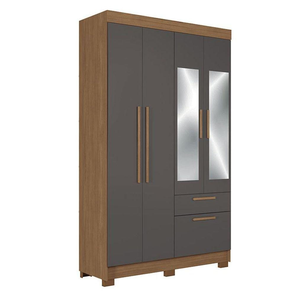 Guarda Roupa Solteiro 4 Portas Londrina Com Espelho Jatobá Grafite - Santos Andirá