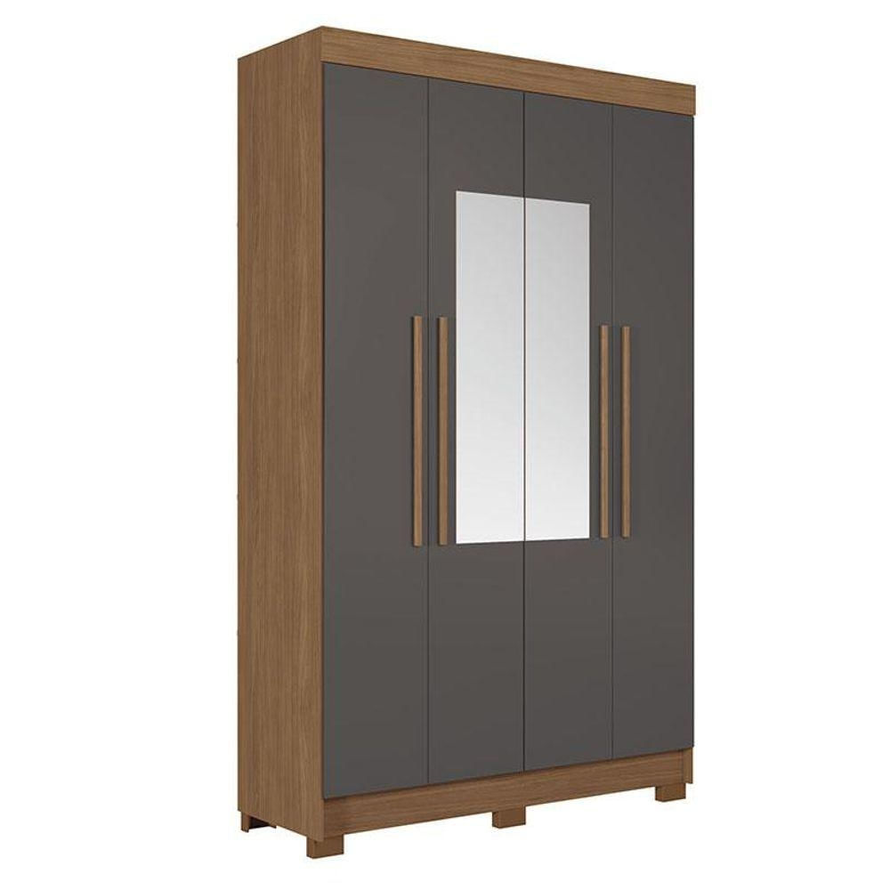 Guarda Roupa Solteiro 4 portas Sarandi com espelho Jatobá Grafite - Santos Andirá Guarda Roupa Solteiro 4 portas Sarandi com espelho Jatobá Grafite: O Sarandi 4 portas é um móvel prático e com ótimo espaço para quem precisa organizar o quarto. Gavetas com corrediças telescópicas e puxadores revestidos dão um acabamento bonito, enquanto o espaço interno ajuda a manter tudo em ordem.Características técnicas: - Desenvolvida em MDP - Pintura em Verniz Fosco - 02 Gavetas internas com corrediças telescópicas - Puxadores em MDF revestidos - 02 Cabideiros/calceiros em aluminio - Pés em PVC - Espaço para sapatos - 04 Amplas prateleiras Dimensões: Altura: 214 cm Largura: 130 cm Profundidade: 46 cm