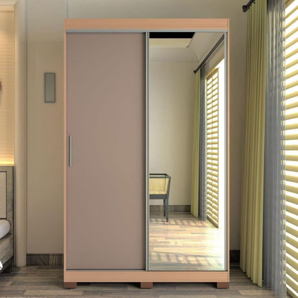 Guarda Roupa Solteiro Bartira América com Espelho 2 Portas 2 Gavetas Avelã
