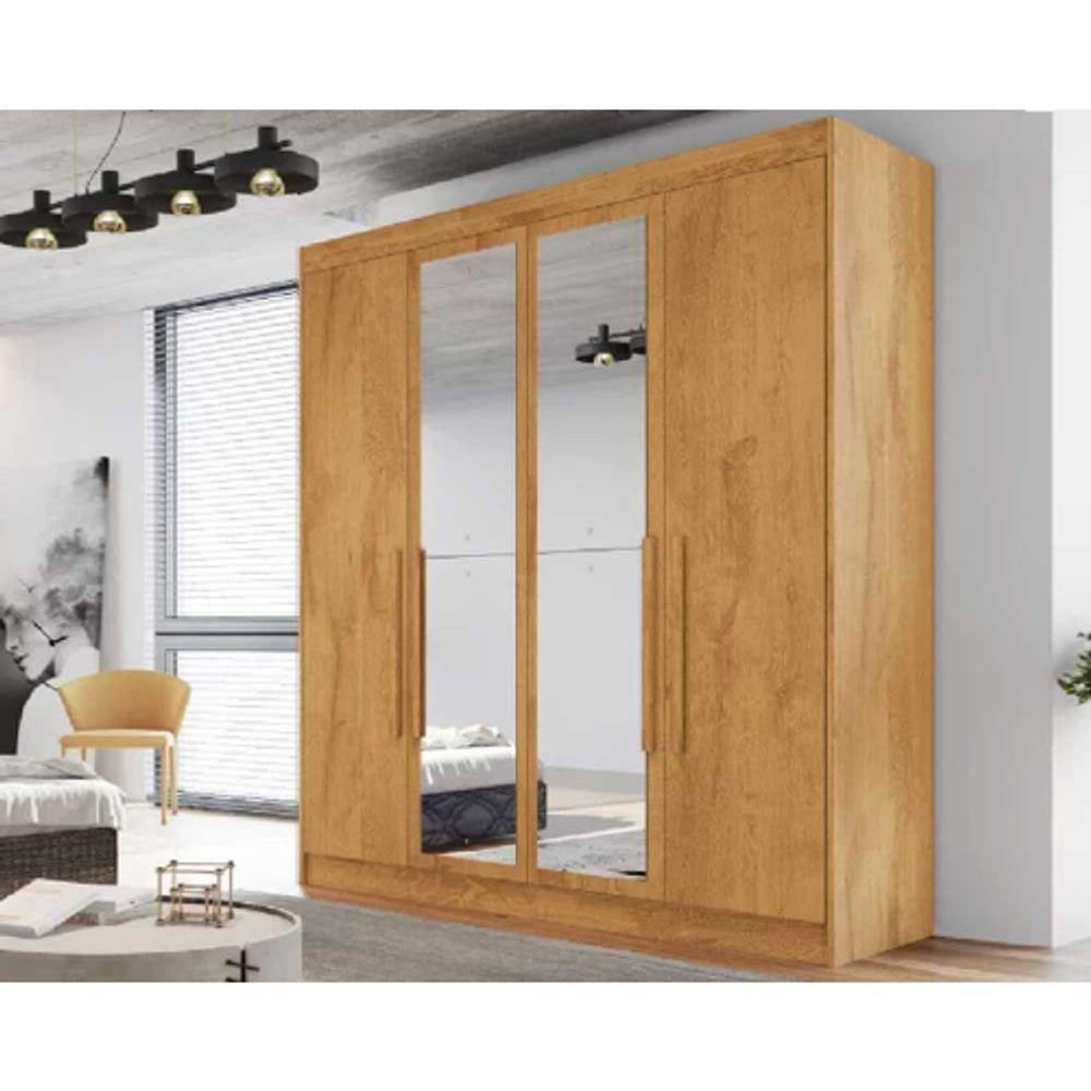 Guarda Roupa Solteiro Com Espelho 4 Portas 3 Gavetas - Nantes-peroba - Móveis Europa