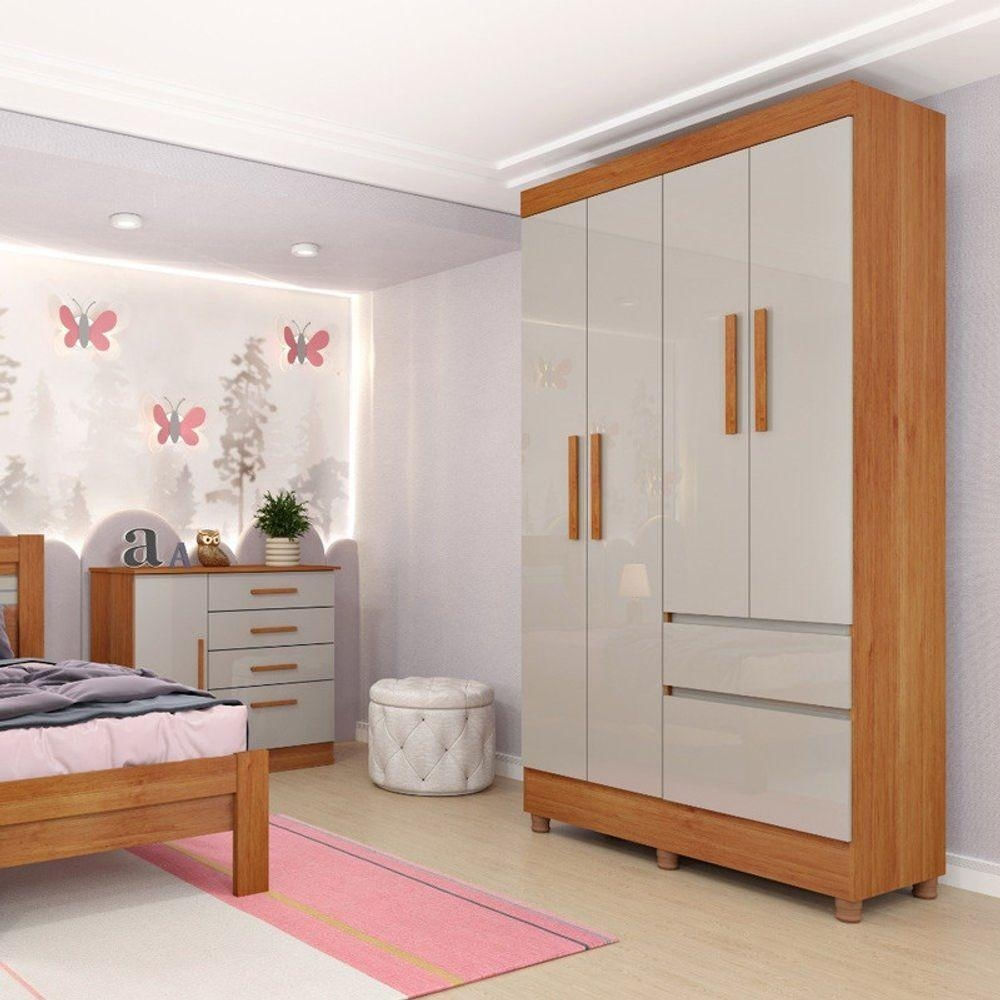Guarda Roupa Solteiro Com Pés 4 Portas 2 Gavetas - Oregon-cinamomo/off White - Tcil Móveis