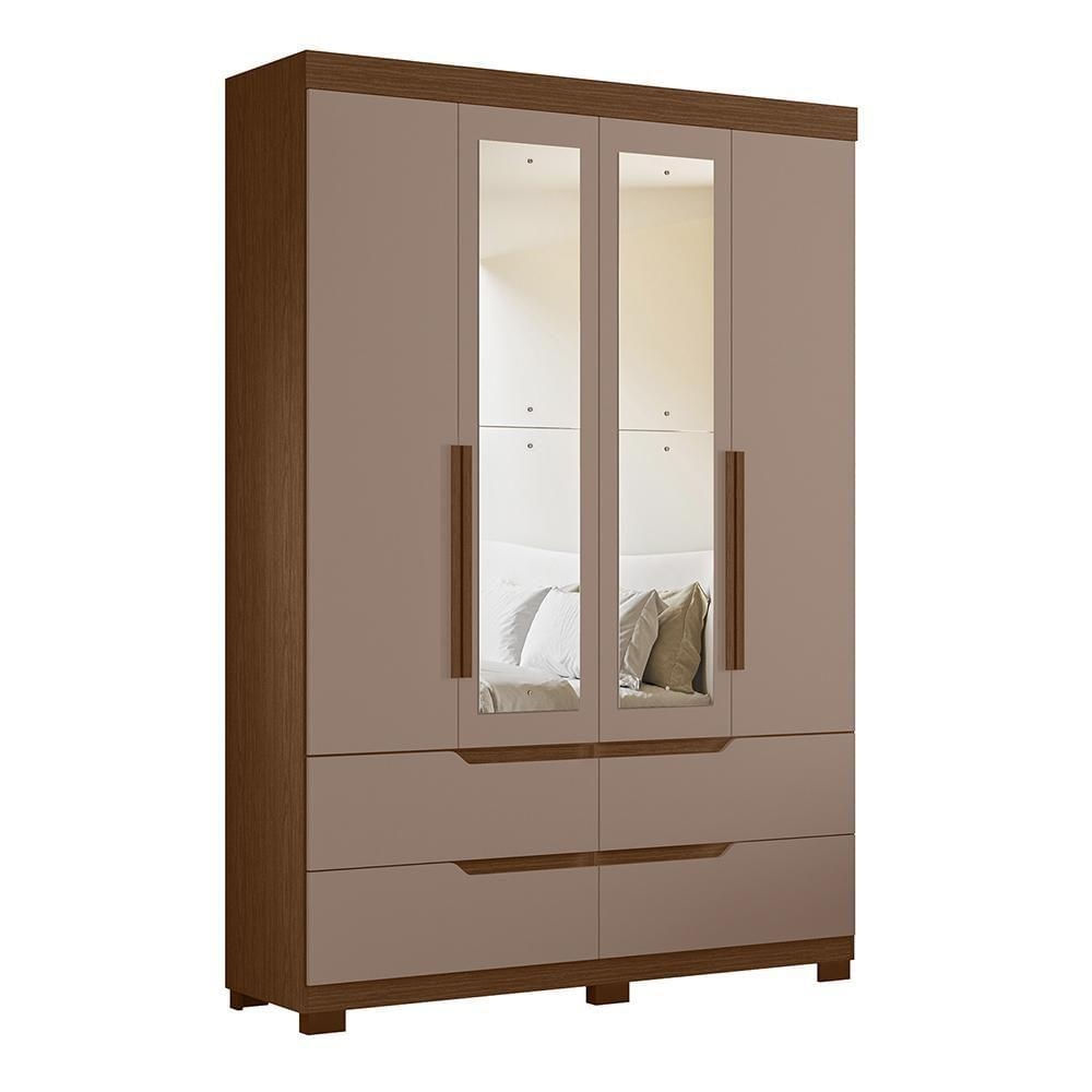 Guarda Roupa Solteiro Doble 4 Portas Nogueira-capuccino Com Espelho - Móveis Albatroz Nogueira-capuccino