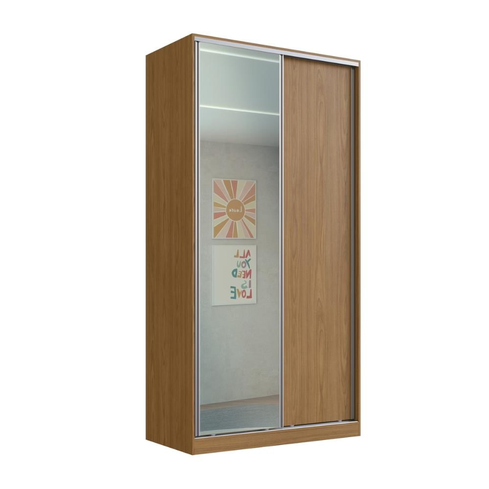 Guarda Roupa Solteiro Espelho Freijó Natural 2 Portas de Correr 120x59,8x235cm RC2005 Emovell