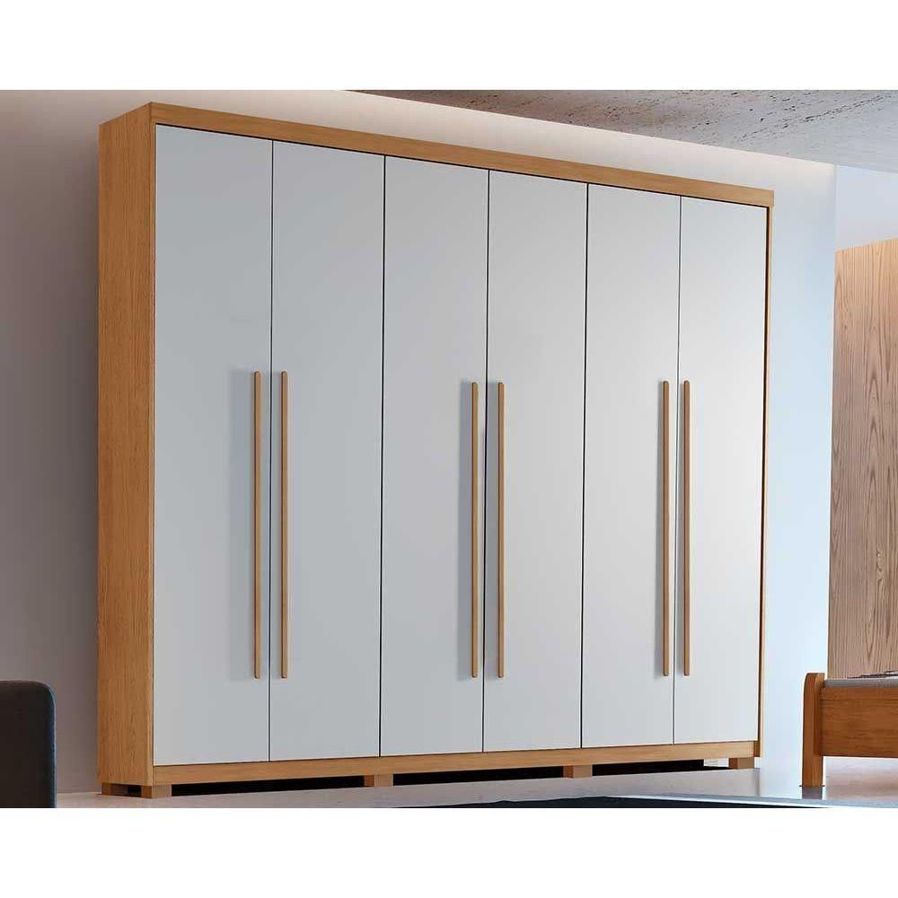 Guarda Roupa Solteiro Hawaii 6 Portas E 2 Gavetas C/ Pés Naturale/off White - Rufato
