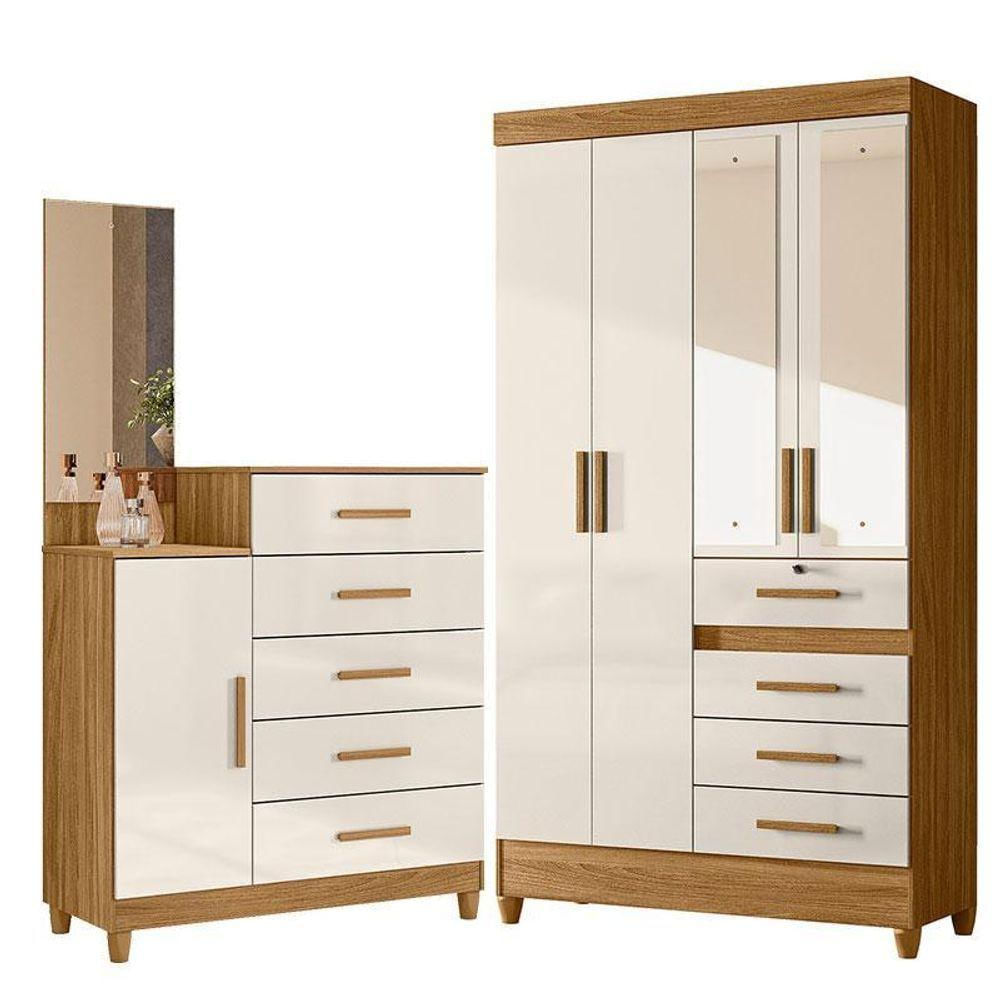 Guarda Roupa Solteiro Sobral - Desenvolvido em 100% MDP - Acabamento UV - Pintura na cor Freijó Off White Brilho - Possui 04 portas - Possui 04 gavetas - Possui 03 prateleiras - Cabideiro em alumínio - Puxadores em MDF - Corrediças metálicas - Dobradiças metálicas - Gaveta com chave para maior segurança - Acompanha espelho - Pés em PVC - Design modernoDimensões: Altura: 204 cm Largura: 110 cm Profundidade: 47 cm Cômoda Lisboa - Desenvolvido em 100% MDP - Pintura na cor Freijó Off White Brilho - Acabamento UV - Possui 01 porta - Possui 05 gavetas - Possui 01 prateleira - Dobradiças metálicas - Corrediças metálicas - Puxadores em MDF - Painel com espelho - Pés em PVC - Design modernoDimensões: Altura: 170 cm Largura: 104 cm Profundidade: 45 cm