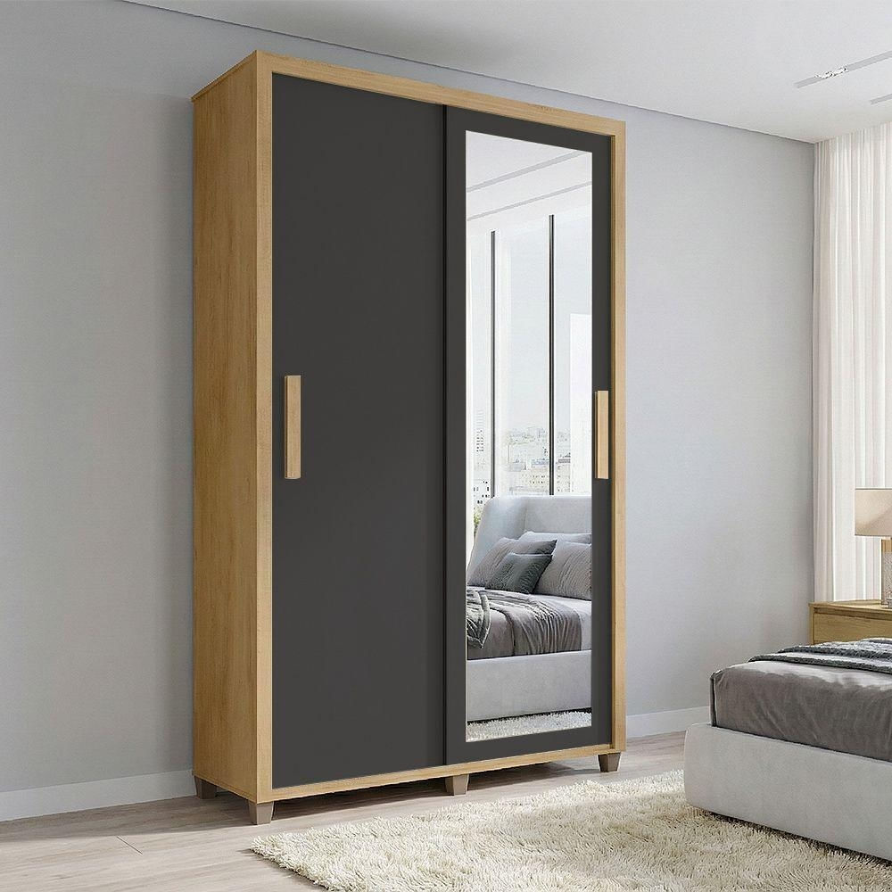 Guarda Roupa Suecia 2 Portas 2 Gavetas Com Espelho Cabideiro Organizador Quarto - Cinamomo/grafite