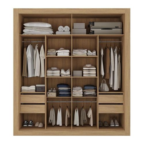 Organização e amplo espaço interno: Os nichos espaçosos são ideais para acomodar roupas, acessórios e calçados com eficiência. A parte superior é perfeita para guardar cobertores e travesseiros, mantendo tudo organizado e de fácil acesso.