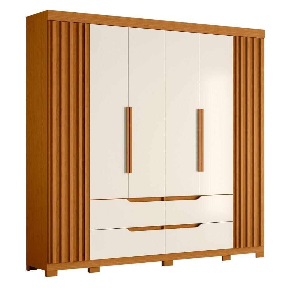 Guarda Roupas Casal 6 Portas 4 Gavetas Ripado Atlanta Madeirado/off White