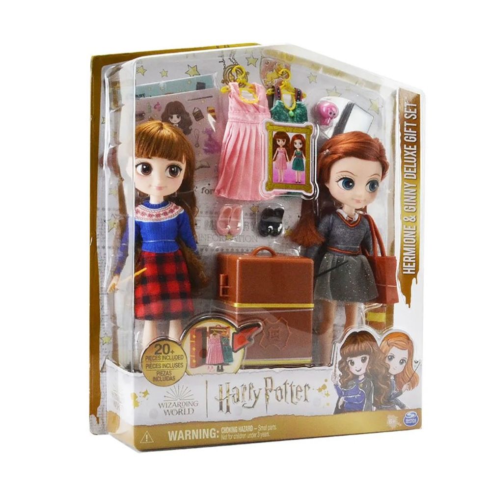 Conteúdo da embalagem: 1 Boneca de 20cm da Hermione, 1 Boneca de 20cm da Gina, 10 acessórios, 4 trajes, 2 adesivos e 1 baú