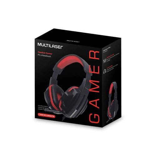 Headset Gamer Multilaser Conexão P2 Cabo de Nylon Preto e Vermelho Color Modelo PH120