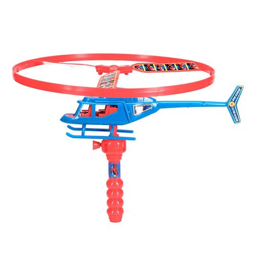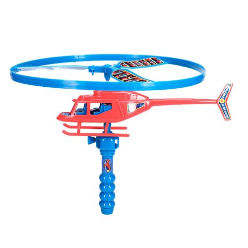 Modo de Usar: Encaixe o disco no topo do helicóptero até ouvir um clique. Em seguida, encaixe a base do helicóptero no topo do lançador, erga o braço acima da cabeça e puxe a corda do lançador para disparar.