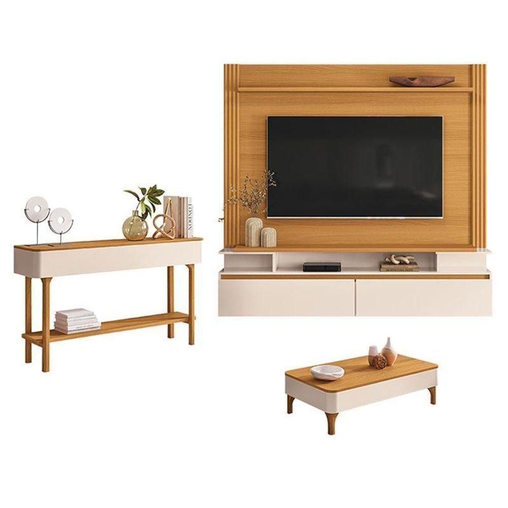 Home Suspenso Astor Cinamomo Off White com Mesa de Centro Liz e Aparador Fiero Off White Cinamomo - HB MóveisO Home Suspenso Astor com Mesa de Centro Liz e Aparador Fiero é ideal para quem busca sofisticação e praticidade na sala de estar. Com design contemporâneo e combinação elegante, o conjunto valoriza o ambiente, oferece melhor aproveitamento do espaço e traz mais organização ao dia a dia.Home Suspenso Astor Cinamomo Off White - HB Móveis Características técnicas: - Projetado para TV de até 65; - 2 Portas basculantes com dobradiças metálicas, - Detalhe canelado vertical nas laterais; - Tampo e prateleira superior com espessura de 25mm; - Produzido em MDP e MDF de 25mm e 15mm;Dimensões: Altura:171cm Largura:181cm Profundidade:33cmMesa de Centro Liz Off White Cinamomo - HB Móveis