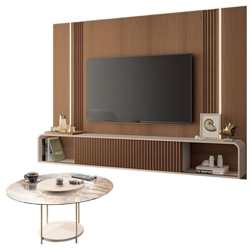 Home Suspenso Castanho Off White E Mesa De Centro Sky Com Tampo De Vidro Off White- Hb Móveis