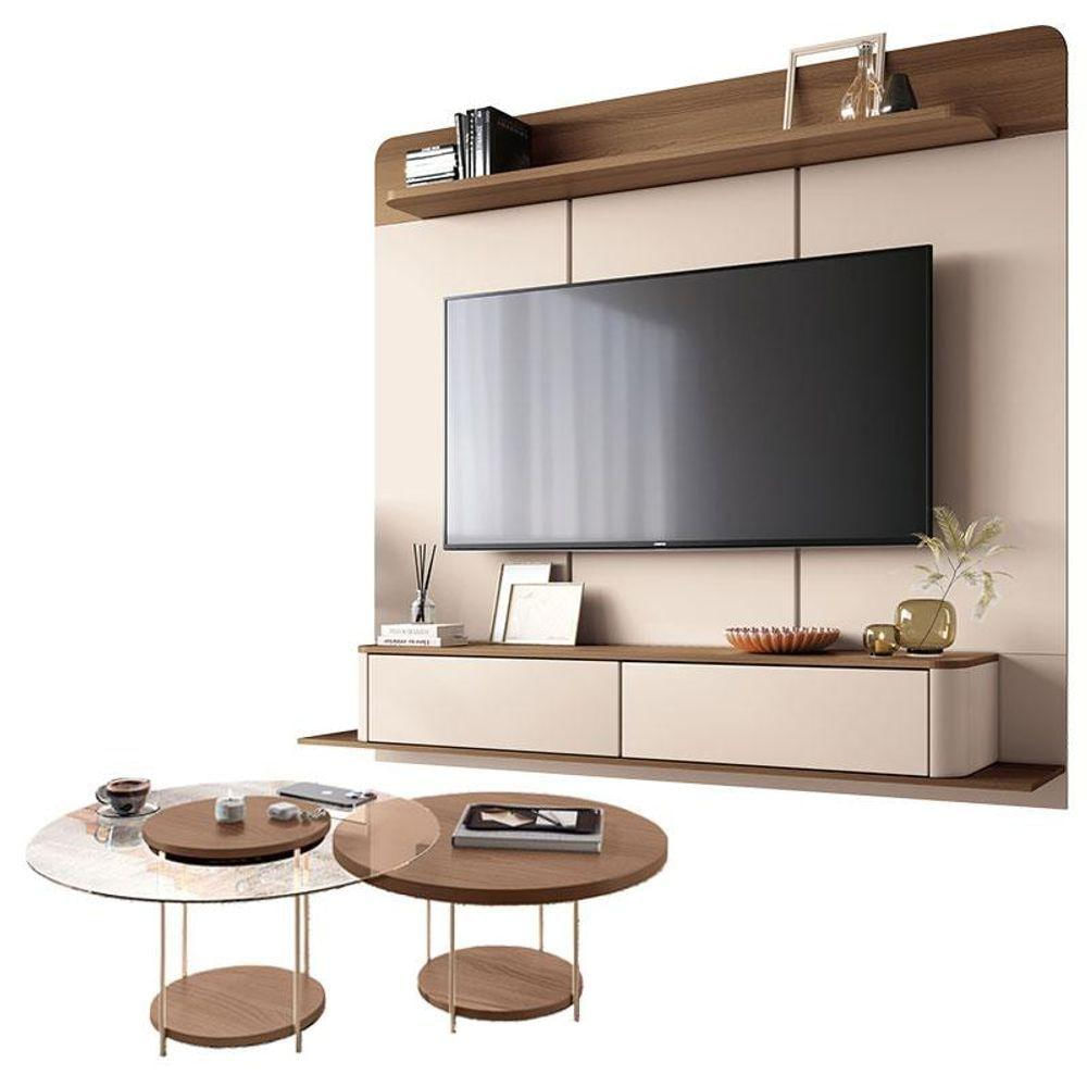 Home Suspenso Galax Castanho Off White E Kit Mesa De Centro Sky Castanho- Hb Móveis