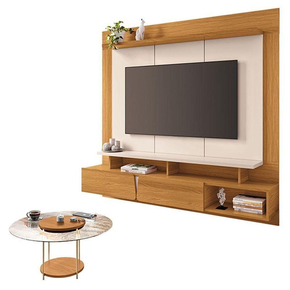 Home Suspenso Zenith Cinamomo Off White Com Mesa De Centro Sky Com Tampo De Vidro Cinamomo - Hb Móveis